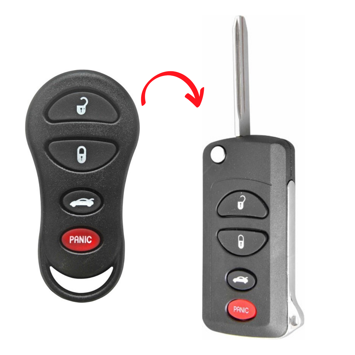 Transforma tu llave tradicional uniendo llave y control remoto en una sola pieza con diseño abatible tipo navaja. Estética moderna, elegancia y discreción en un solo accesorio con base de metal de alta calidad.